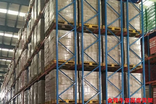? 雙深度重型貨架上部分客戶為提高空間使用率,采用雙深度叉車(chē)而形成的一種重型橫梁式貨架,空間利用上比橫梁式貨架提高40%-80%,適用于貨物在600kg/托盤(pán)的產(chǎn)品(雙深度叉車(chē)的承載能力比普通叉車(chē)低),最好配備擋桿來(lái)使用,這樣操作者比較容易感知里面一排貨物是否存放到位。由于高存放存在視覺(jué)誤差,對(duì)操作者的金嗯提出較高要求,貨物放偏會(huì)導(dǎo)致掉下?lián)p壞,甚至造成人員受傷,在橫梁上面可以鋪鋼板層、鋼絲層、木層板來(lái)使用,避免貨物掉落。